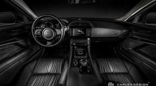 Официальные фото дизайнерской студии демонстрируют, что кардинальные новшества в салон машины клиент делать не захотел, взяв во внимание создание новенькой обивки на кресла машины. Данный экземпляр Jaguar XE получил кузов в глубоко черном оттенке с аналогичной темой на оформление интерьера. Carlex Design внедрили больше динамичности, сделав волнообразную прострочку на отдельные участки обивки кресел с дверными панелями.