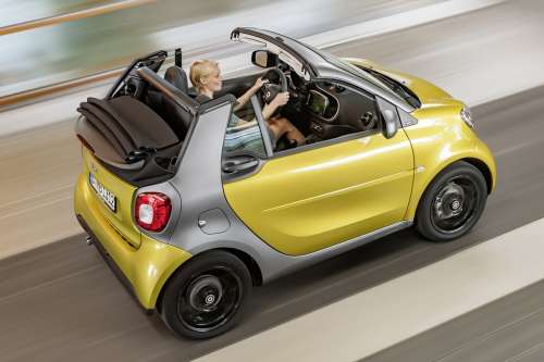 Новенький кабриолет Fortwo дебютировал в 2015 году во Франкфурте. В длину авто равно 2690 мм, в ширину — 1660 мм. Новым элементом в машине выступил мягкий верх, а сам дизайн почти ничем не поменялся, напоминая дизайнерское решение купе. Верх доступен в 3-х вариациях цвета, а складывается он за 12 с. За счет дистанционного управления, крышу можно открыть и снаружи авто.