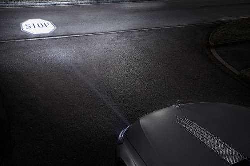 Дополнительно новенькая оптика способна проецировать на дорожное покрытие разные символы. К примеру, демонстрировать дистанцию до поворотов, повторять считанный камерой знак на дороге, предупреждать об опасностях и т.д.