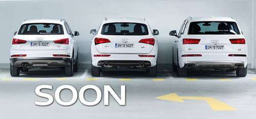 Изображение показывает модели Q3, Q5, Q7, размещенные на парковке. Единственный свободный сектор зарезервирован для авто, смотрины которого состоятся совсем скоро.